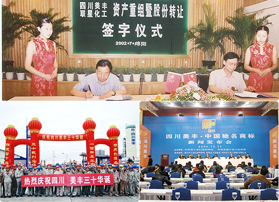 2002年7月,四川美丰收购绵阳市联星化工有限责任公司经营性资产,与中国石化集团全资子公司成都华川石油天然气勘探开发总公司资产重组,成为国内同行中具有天然气资源背景的化肥生产企业,走专业化超常规发展道路,成为国内大型氮肥企业。